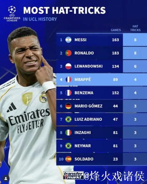 欧冠赛制改革后,谁才是真正意义上的“帽子戏法之王”?最新统计给出了清晰答案:在改制后的欧冠赛场上,梅西与C罗以相同的戴帽次数并列第一,依然牢牢占据这个时代的进球巅峰,而莱万多夫斯基则紧随其后,展现出中